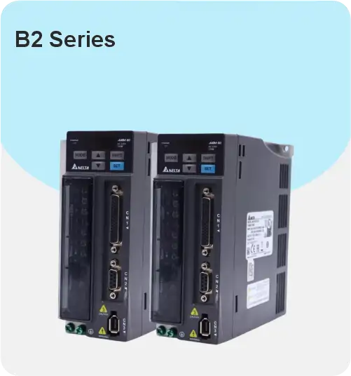 The Delta ASDA-B2 Series Servo Drive is a compact, cost-effective, and high-performance servo solution for industrial automation. Built with 17-bit encoder resolution, high-speed response, and advanced auto-tuning, the ASDA-B2 delivers precise motion control for a wide range of OEM and industrial applications.