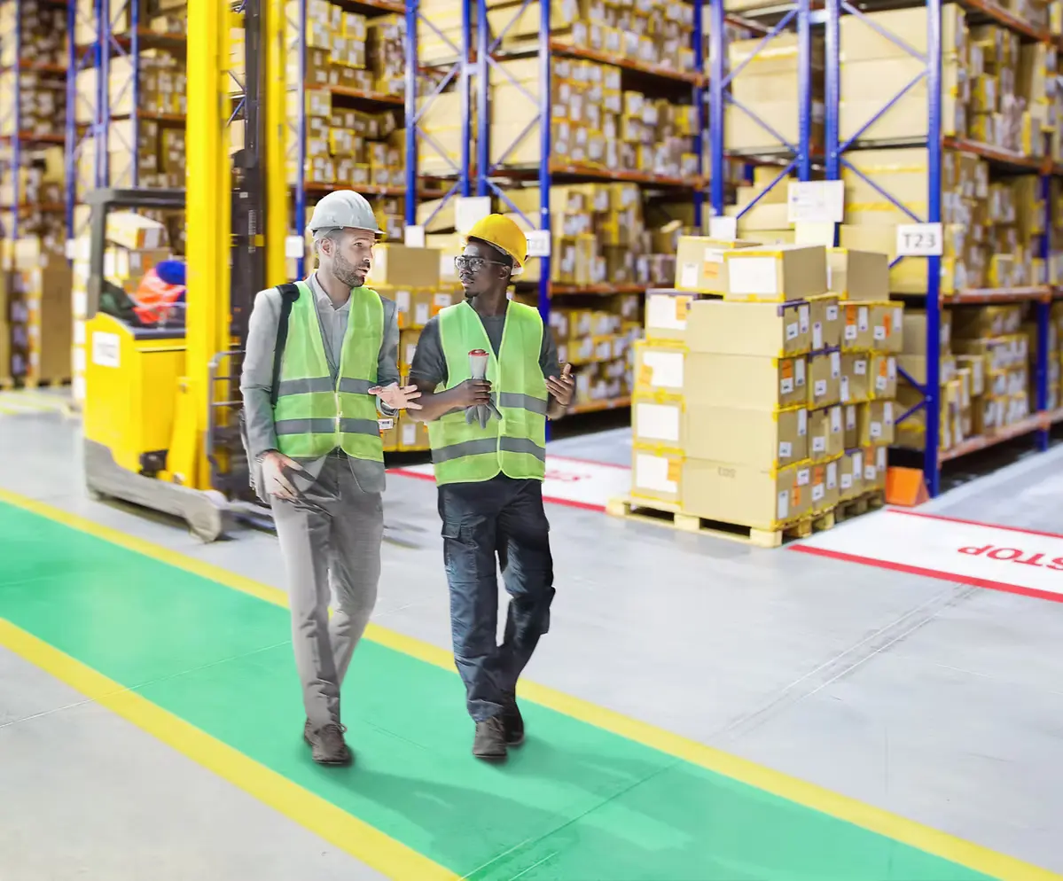 Create clear, high-visibility pedestrian walkways without paint or decals. These laser projectors display consistent, tamper-proof walkway lines in real-time — even in dusty, high-traffic environments.